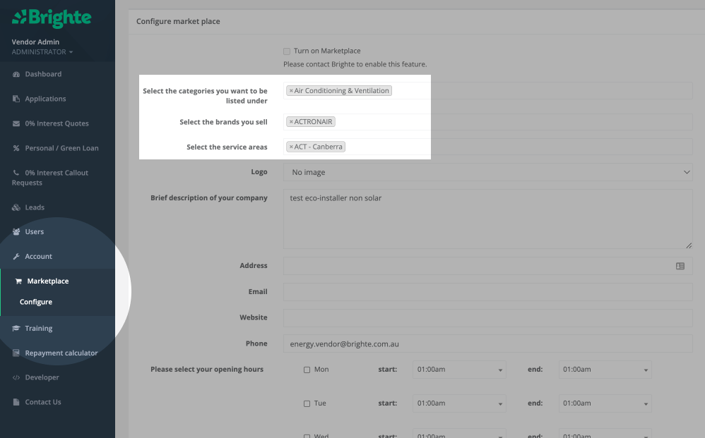 Customers are able to request quotes from you by choosing your listing in the Brighte marketplace. By setting up your service areas and product categories you'll ensure that your listing is visible to potential customers.