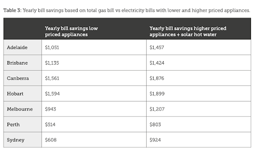 If you’re able to afford to pay more for an energy-efficient appliance, this will cost you less to run in the long term. That said, no matter whether you choose a lower or higher-priced appliance, you’ll still save money switching from gas to electric appliances. Take a look at this table to see how much your household can save.